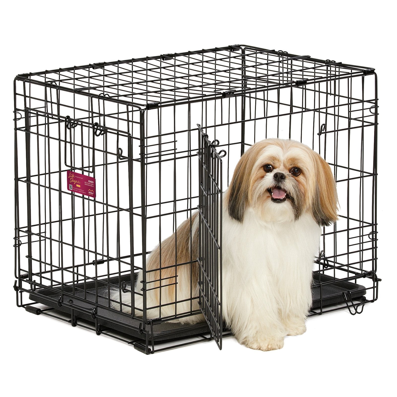 The all inclusive double door life stages folding metal dog crate by midwest homes for pets includes all of the features you will need to provide a convenient, safe & secure pet home for your best friend.
